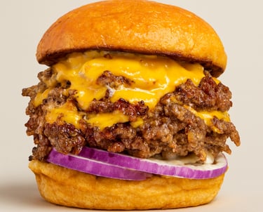 Doble medallón, cuádruple cheddar y hecho con pasión. Solo Delivery & Take Away.